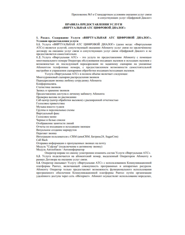 Правила предоставления услуги «Виртуальная АТС Цифровой Диалог»